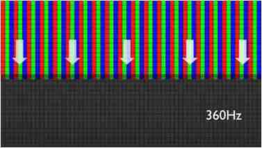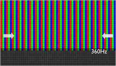 传统液晶驱动是从左到右单向进行,,,,在画面更新速度愈来越愈快的情况下,,,,位于驱动线路末端的右下角区域,,,画素的闸极来不及在短时间内获得足够电压,,,,无法显示出正确的颜色资讯。。。